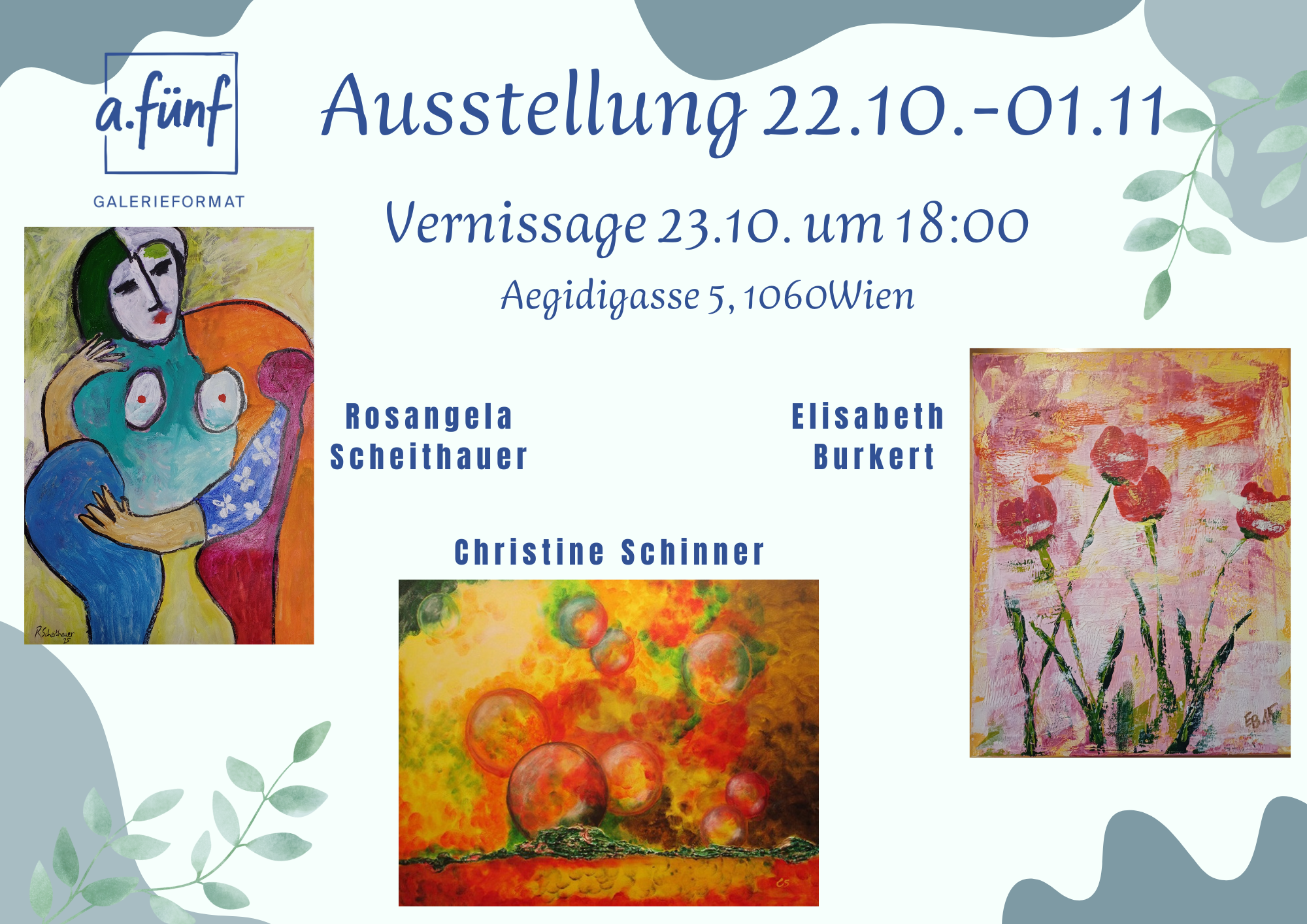 Donnerstag, 23. Oktober 18 Uhr Vernissage zweiwöchige Ausstellung bei a5 GALERIEFORMAT Aegidigasse 5, 1060 Wien