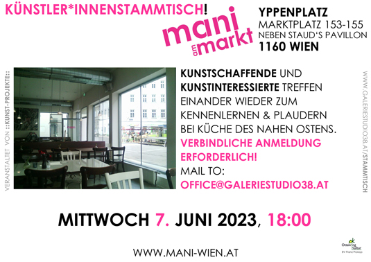 2. Juli MANI am Markt Yppenplatz Marktplatz 153-155, neben Staud's Pavillon, 1160 Wien EINLADUNG als PDF