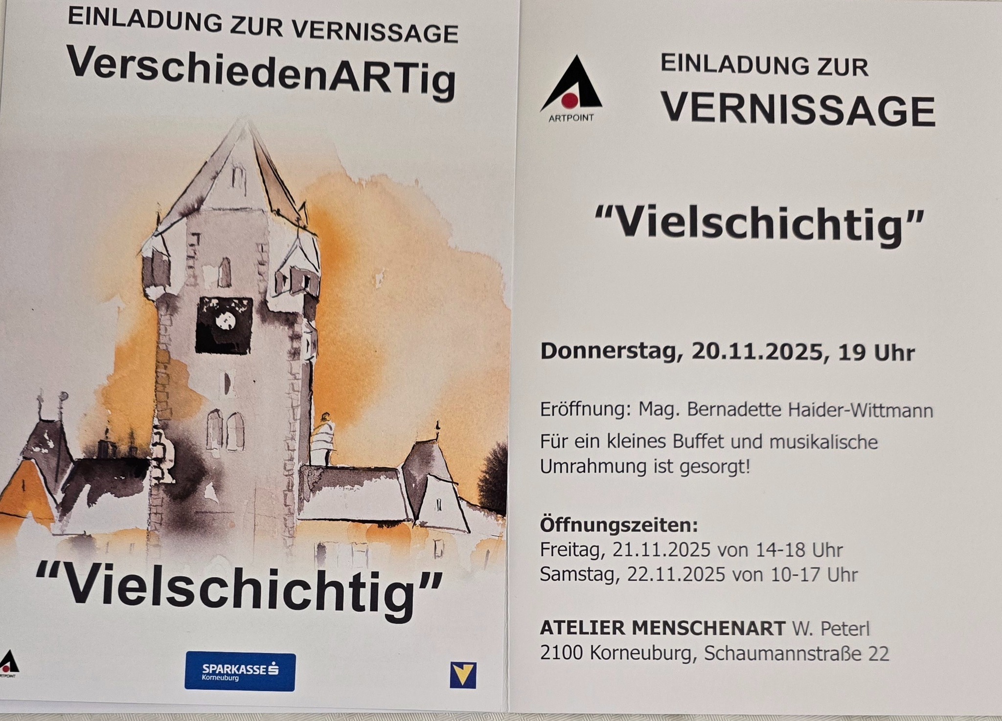 Donnerstag, 20. November, 19 Uhr Vernissage VerschiedenARTig Ausstellung bis 22. November