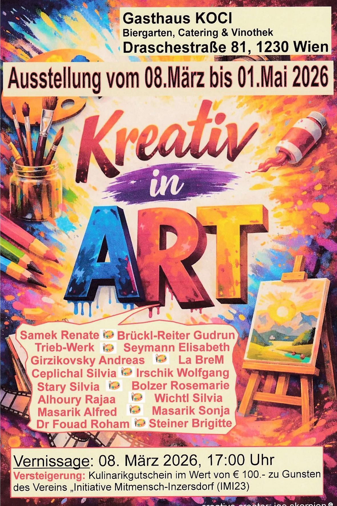 8. März - 5. Mai "Kreativ in Art" Gasthaus Koci Draschestraße 81, 1230 Wien
