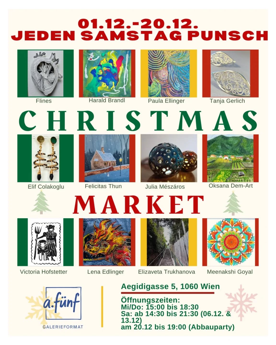 1. - 20. Dezember nimmt teil beim Christmas Market von a.fünf GALERIEFORMAT, Aegidigasse 5, 1060 Wien
