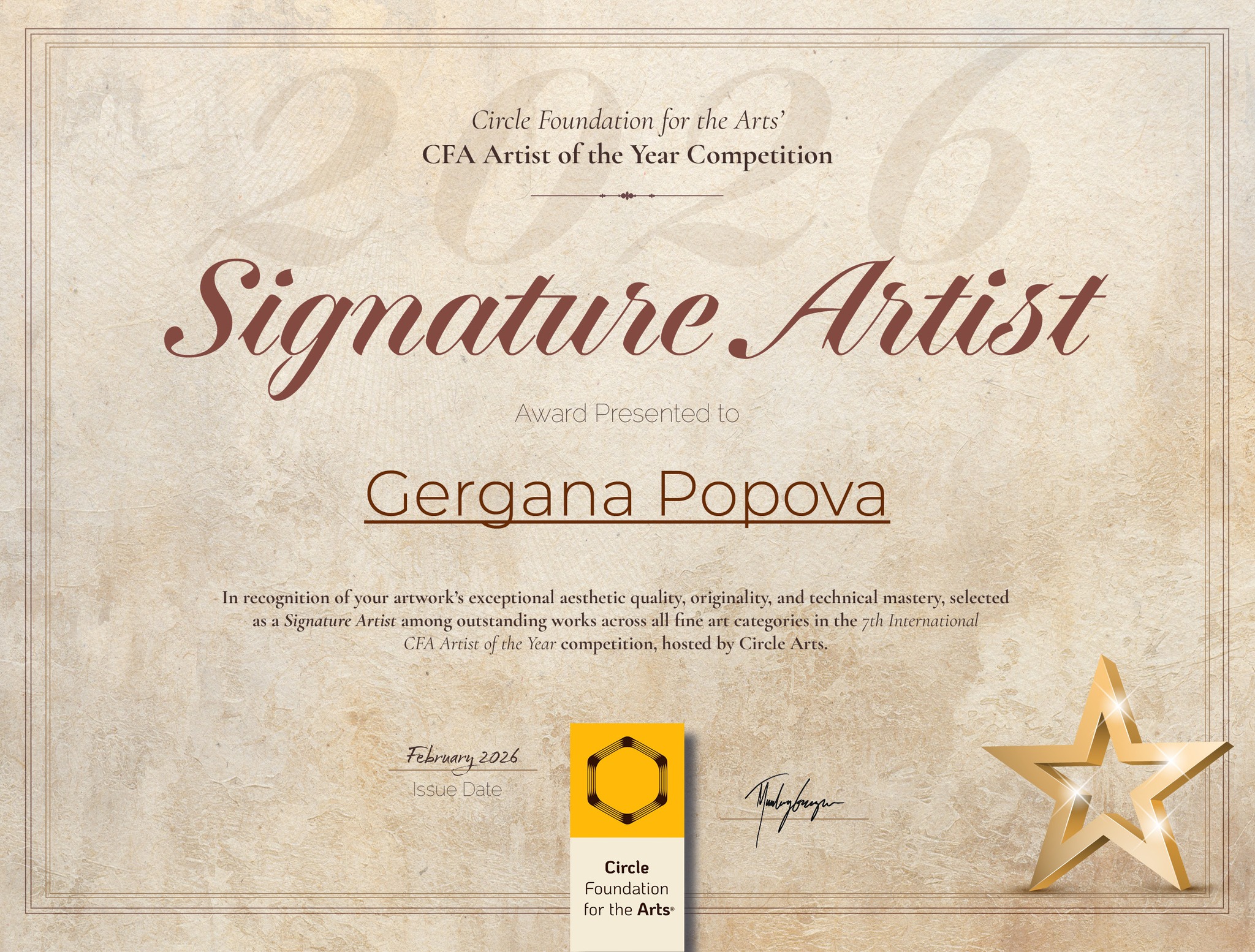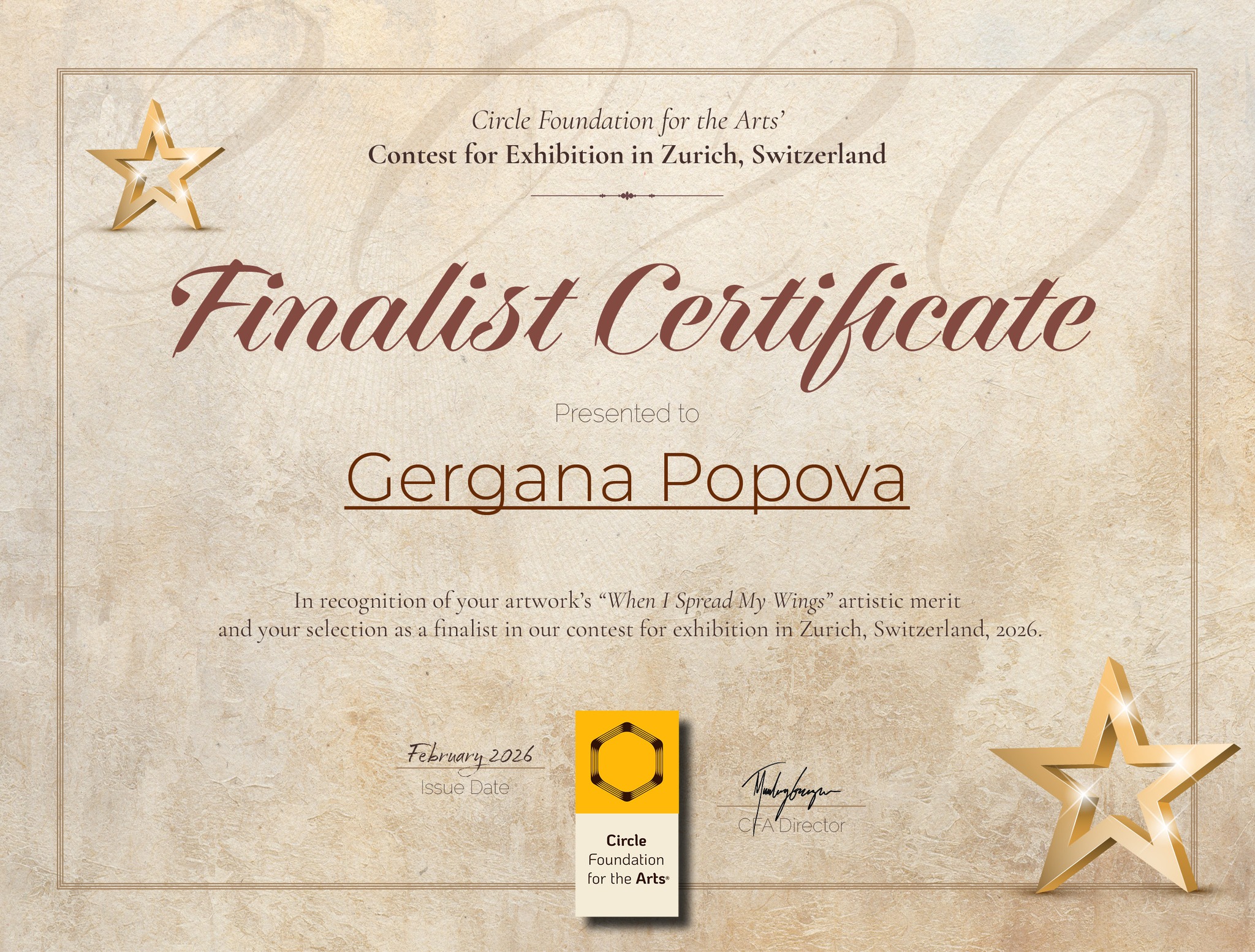 240 Künstler_innen aus 43 Ländern teilgenommen. Das Finalistinnen-Werk von Gergana heißt "When I Spread My Wings" -