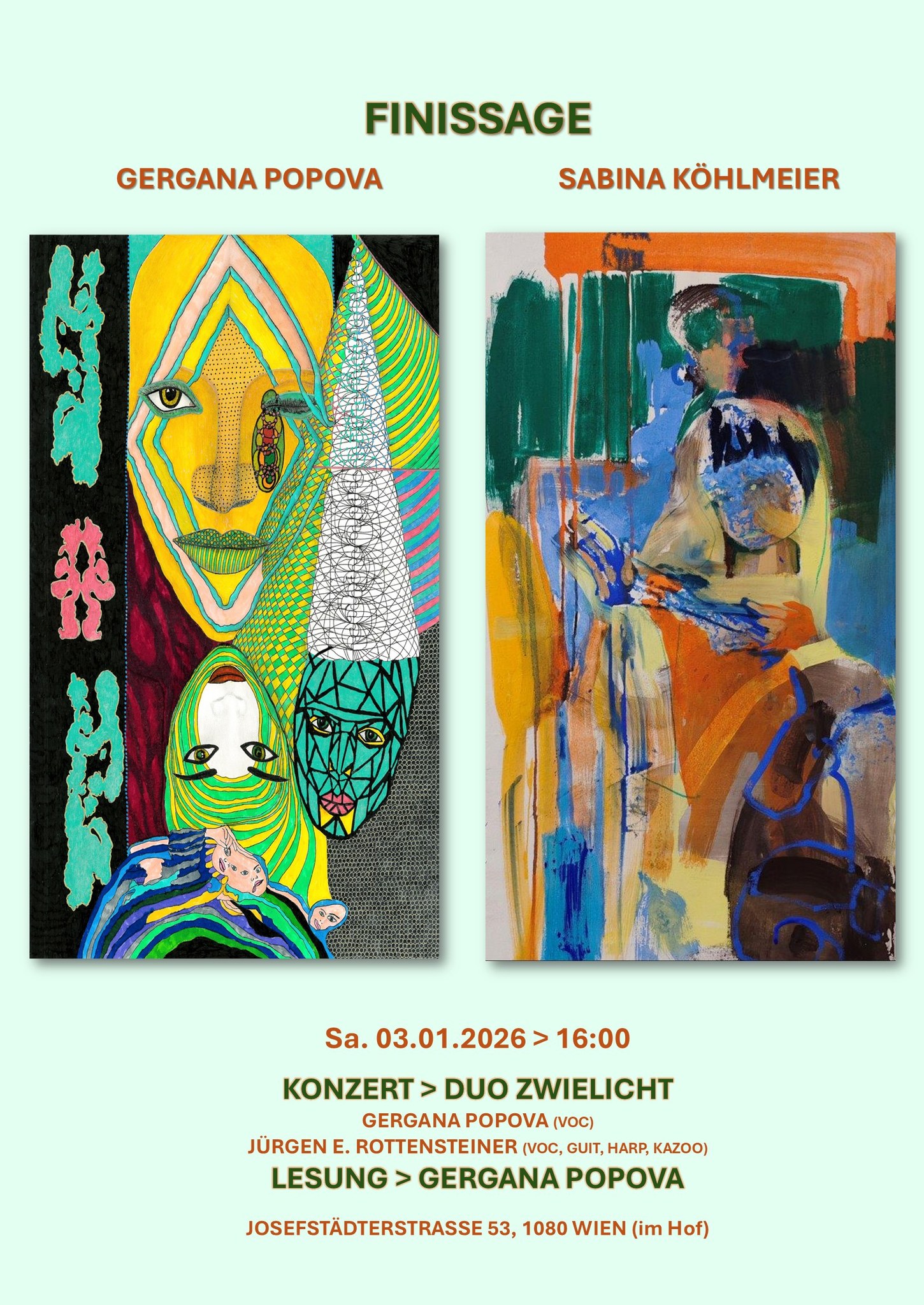 Samstag, 3. Jänner, 16 Uhr Finissage mit Lesung Gergana Popova und Konzert Duo Zwielicht
