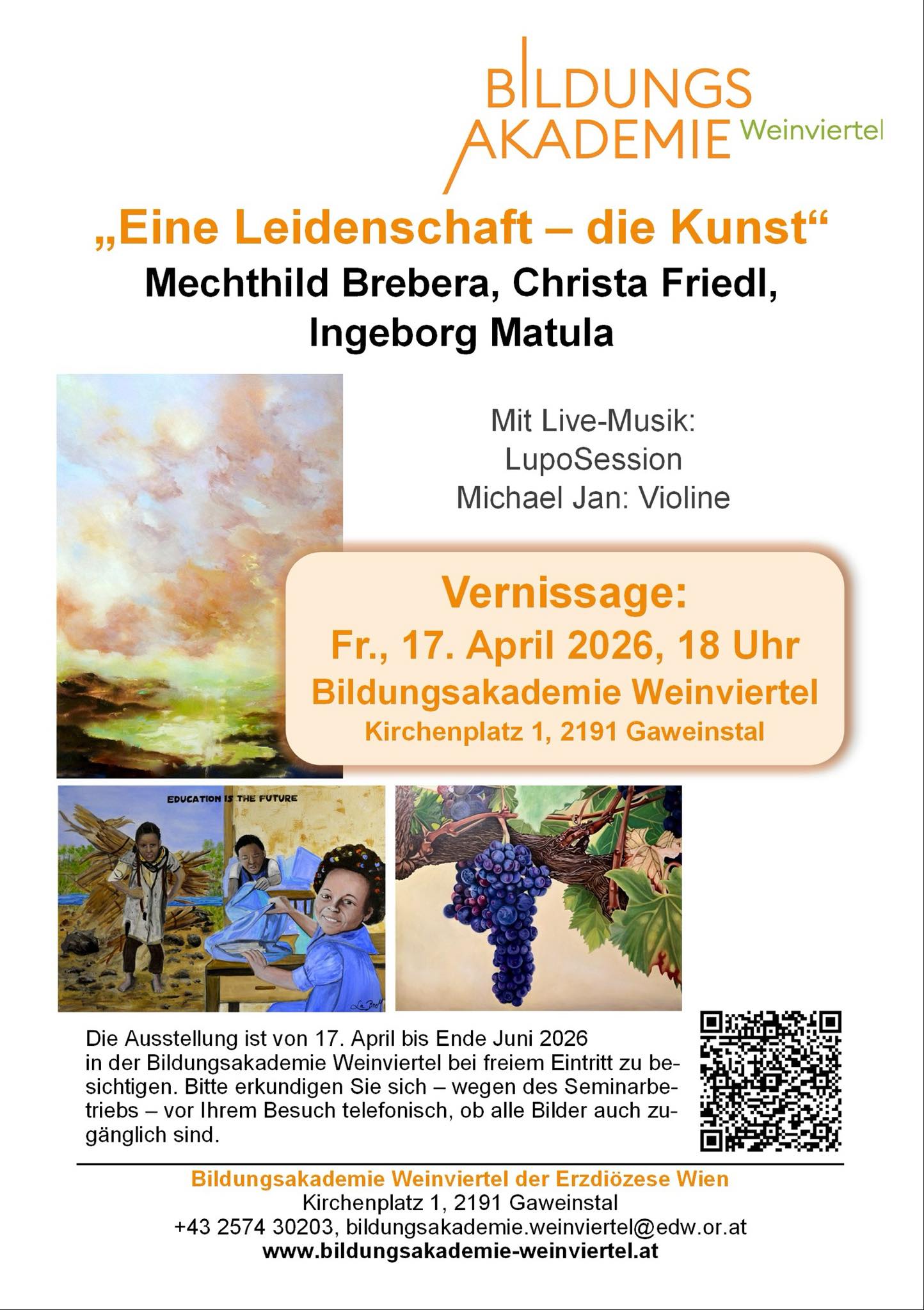 Vernissage Freitag, 17. April, 18 Uhr Bildungsakademie Weinviertel