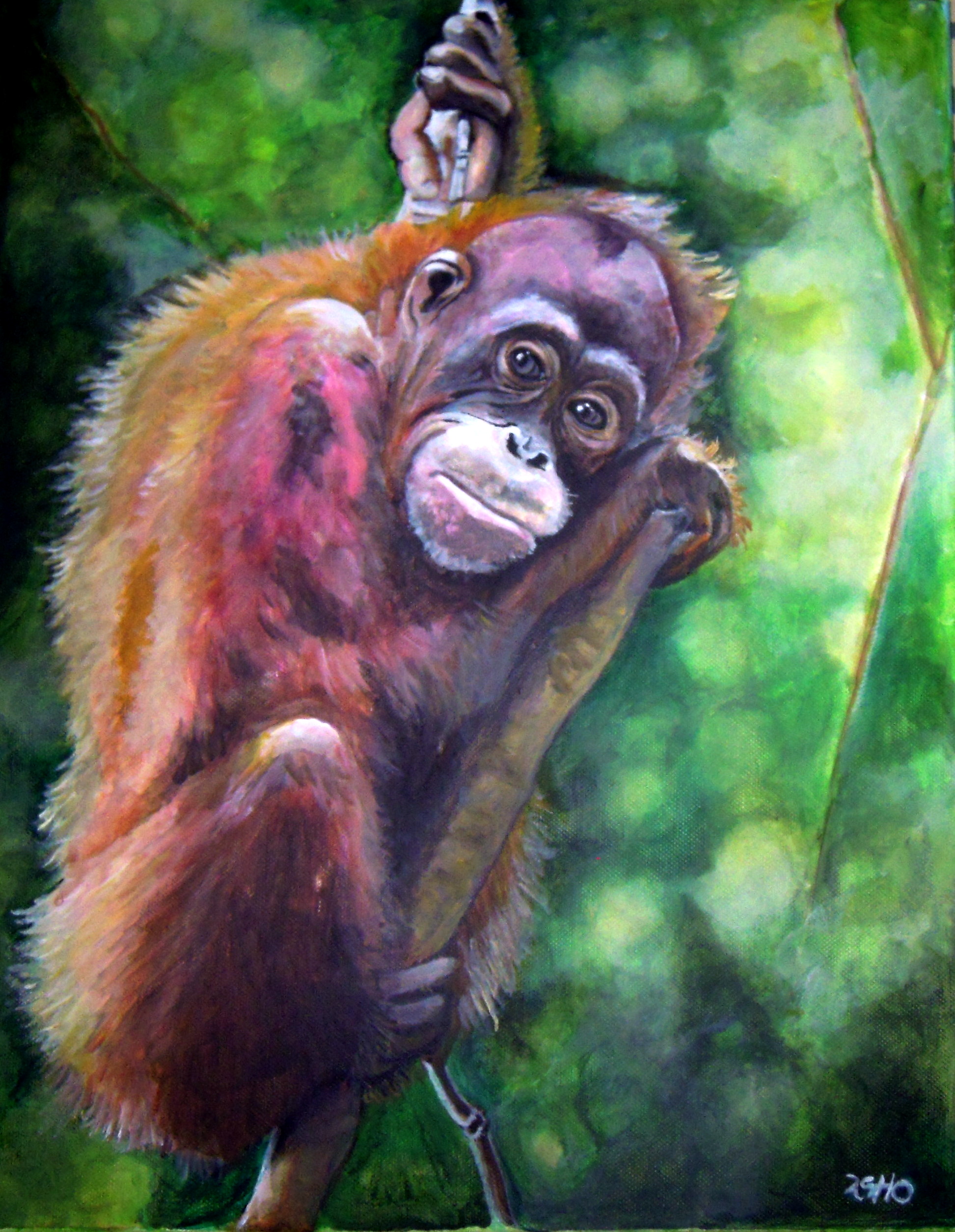 Jane Goodall hat uns als Vermächtnis die Erkenntnis hinterlassen: Affen sind die besseren Menschen. Sie ähneln uns anatomisch, in Mimik, Gruppendynamik, Verhaltensmustern, Emotionen, Sozialverhalten, dennoch werden sie von uns gejagt, aus ihrem Lebensraum vertrieben, ins Lächerliche gezogen und zu Clowns degradiert, als Versuchstiere missbraucht, ihnen das Recht als Persönlichkeit abgesprochen. Die Vielfalt von Verhalten, Farben und Formen unserer evolutionären Vorfahren haben mich schon immer fasziniert und ich versuche in meinen Bildern ihre Persönlichkeit widerzuspiegeln. Von den 48 bisher portraitierten Affen verschiedener Subspezies bekommen im "Affentheater" 20 von ihnen Bühne frei, um im geschützten Bereich einige ihrer vielen Facetten zeigen zu können. Sylvia Kölbl