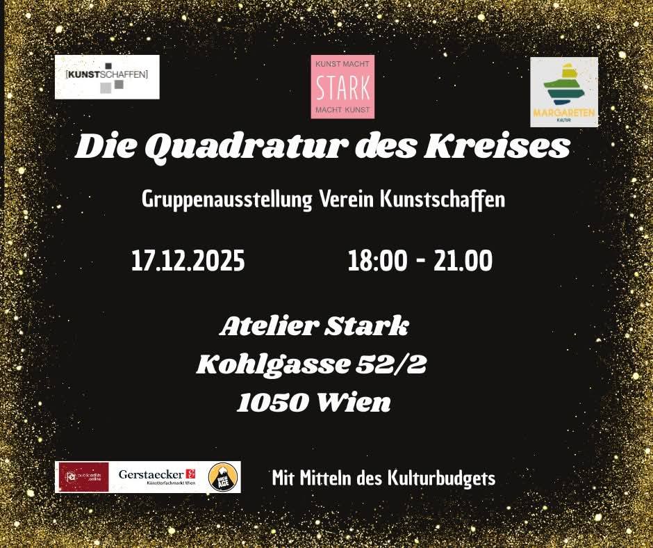 17. Dezember Ausstellungsbeteiligung "Die Quadratur des Kreises" Atelier Stark Kohlgasse 52/2 1050 Wien