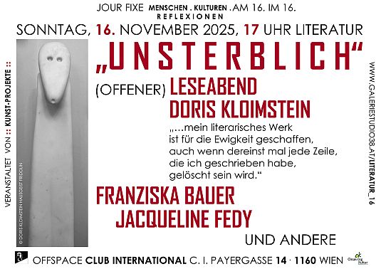 Leseabend Doris Kloimstein zum Thema: UNSTERBLICH sowie Franziska Bauer und Jacqueline Fedy und andere