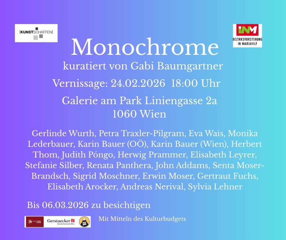 Ausstellungsbeteiligung Monochome Vernissage Dienstag, 24. Februar, 18 Uhr