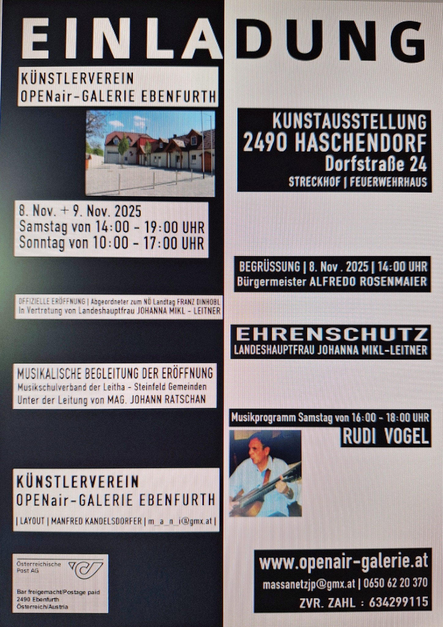 Samstag, 8. und Sonntag, 9. November Kunstausstellung Haschendorf Künstlerverein OPENair-Galerie Ebenfurth